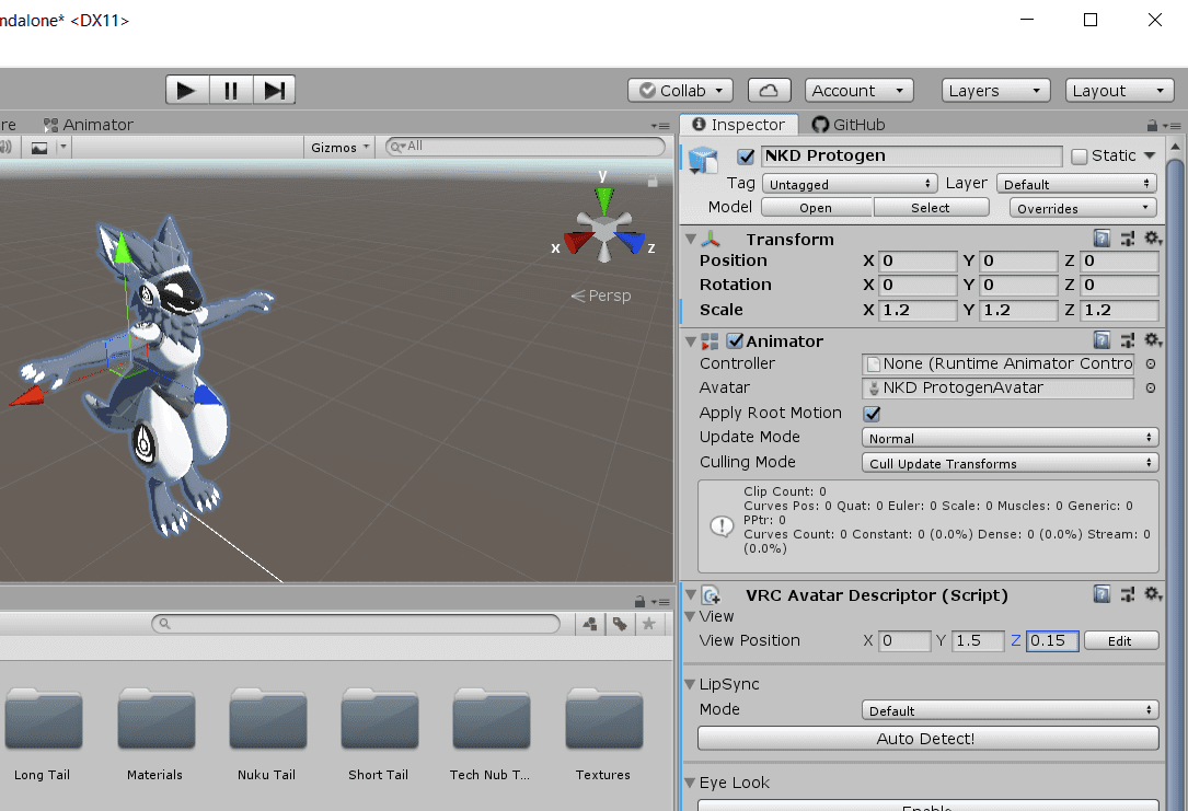 This is a tutorial about upgrading a VRChat avatar from the Avatars 2.0 to the Avatars 3.0 system (VRCSDK3), specifically about upgrading the NKD Protogen avatar to Avatars 3.0, though some of this tutorial should be relevant to upgrading any avatar to Avatars 3.0. As of the time of writing, the NKD Protogen avatar is only officially available as an Avatars 2.0 compatible project, which means that as-is, it's not compatible with Avatars 3.0 and its benefits unless you upgrade it yourself.